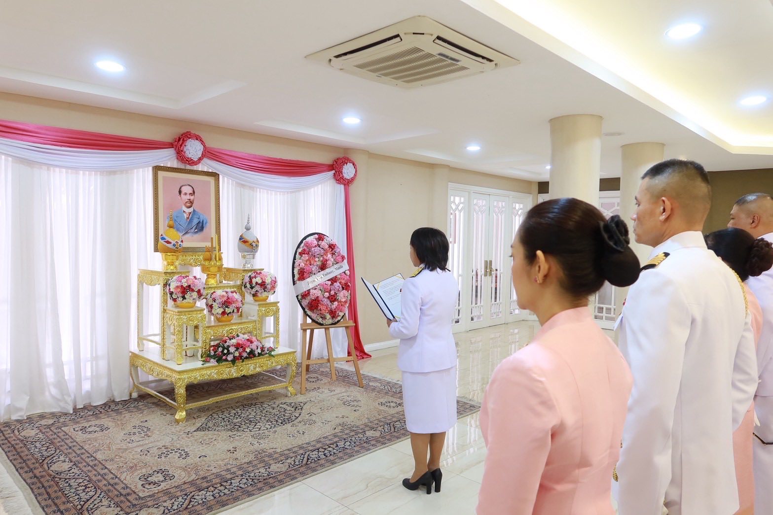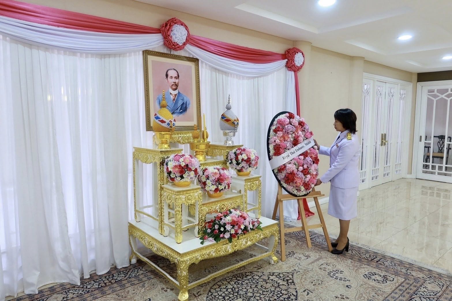 เนื่องในวันปิยมหาราช 23 ตุลาคม 2568 สถานเอกอัครราชทูต ณ กรุงมะนิลา ได้จัดพิธีน้อมรำลึกในพระมหากรุณาธิคุณ พระบาทสมเด็จพระจุลจอมเกล้าเจ้าอยู่หัว โดยนางมาฆวดี สุมิตรเหมาะ เอกอัครราชทูตฯ ได้วางพวงมาลาเบื้องหน้าพระบรมฉายาลักษณ์พระบาทสมเด็จพระจุลจอมเกล้าเจ้าอยู่หัว และกล่าวน้อมรำลึกในพระมหากรุณาธิคุณฯ ในนามข้าราชการและประชาชนชาวไทยที่พำนักในสาธารณรัฐฟิลิปปินส์และสาธารณรัฐปาเลา จากนั้น เอกอัครราชทูตฯ และผู้เข้าร่วมพิธีฯ ได้ยืนสงบนิ่งเป็นเวลา 57 วินาที เพื่อน้อมรำลึกในพระมหากรุณาธิคุณพระบาทสมเด็จพระจุลจอมเกล้าเจ้าอยู่หัว โดยมีข้าราชการสถานเอกอัครราชทูตฯ ทีมประเทศไทย พร้อมคู่สมรส เข้าร่วม